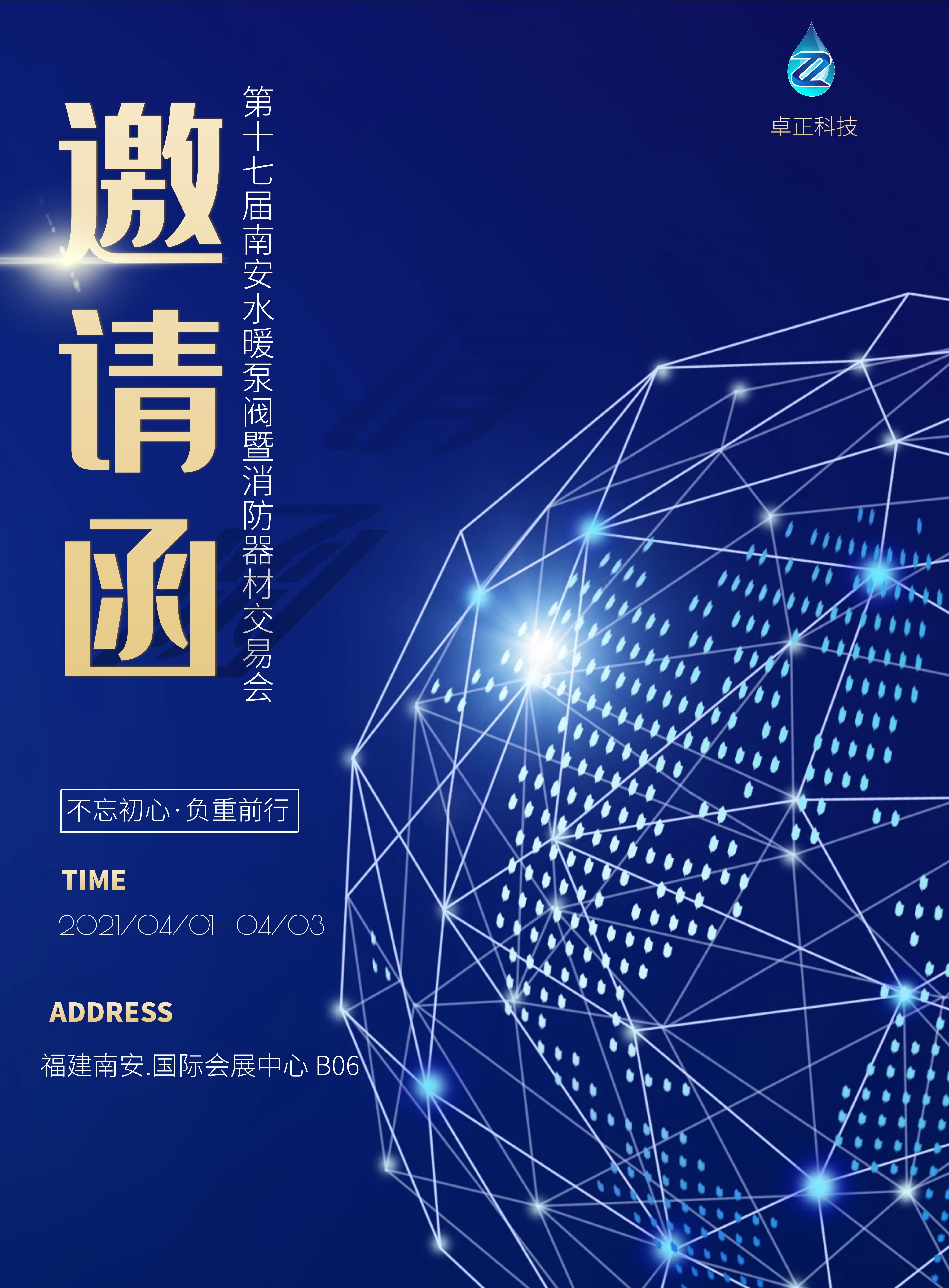 您好!我們誠摯邀請您觀展在2021 年 4 月 1 日至 3 日福建南安國際會(huì)展中心舉辦的第十七屆南安水暖泵閥暨消防器材交易會(huì),卓正科技應(yīng)展會(huì)邀約將如期趕赴參展。
