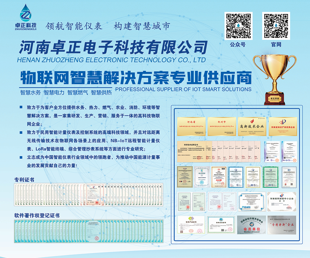 河南卓正電子科技有限公司,專業(yè)的物聯(lián)網(wǎng)表應(yīng)用方案提供商,擁有一支多名博士、碩士組成的核心研發(fā)團(tuán)隊(duì),率先將NB-IoT、LoRa遠(yuǎn)傳技術(shù)、智能閥控技術(shù)應(yīng)用于水務(wù)、熱力、燃?xì)?、農(nóng)業(yè)、消防、環(huán)境領(lǐng)域,以“領(lǐng)航智能儀表 構(gòu)建智慧城市”為企業(yè)使命,立志成為中國智能儀表行業(yè)領(lǐng)域中的領(lǐng)跑者,為推動(dòng)中國能源計(jì)量事業(yè)的發(fā)展貢獻(xiàn)自己的力量!