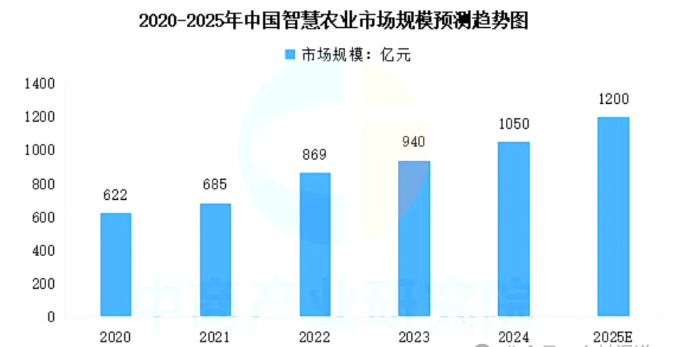 在全球智慧農(nóng)業(yè)市場(chǎng)的快速增長(zhǎng)中,中國也扮演著重要角色。中國作為農(nóng)業(yè)大國,對(duì)智慧農(nóng)業(yè)技術(shù)的需求和應(yīng)用尤為迫切。政府和企業(yè)紛紛加大投入,推動(dòng)智慧農(nóng)業(yè)技術(shù)的研發(fā)和應(yīng)用。【鄉(xiāng)村聞道】認(rèn)為智慧農(nóng)業(yè)市場(chǎng)規(guī)模連年增長(zhǎng),2024年中國智慧農(nóng)業(yè)市場(chǎng)規(guī)模超千億元,達(dá)到約1050億元,預(yù)計(jì)2025年將達(dá)到1200億元。